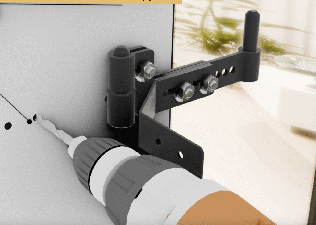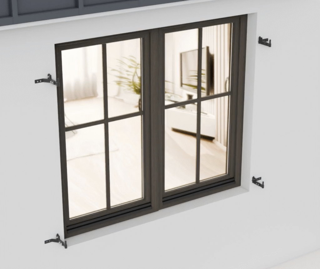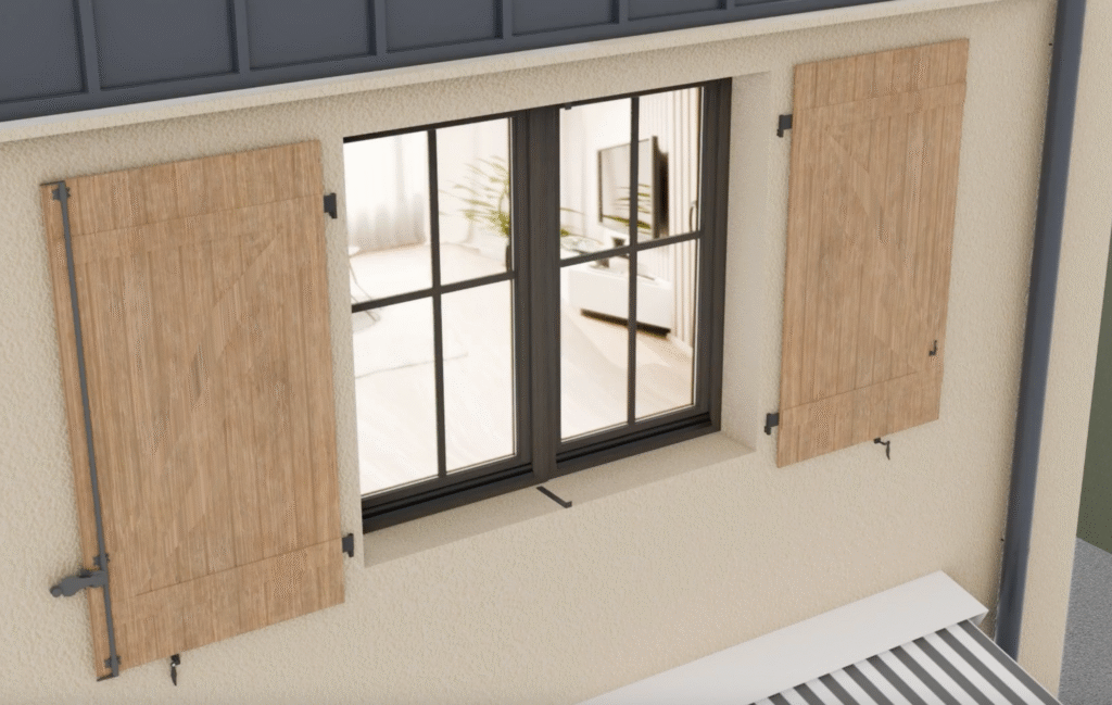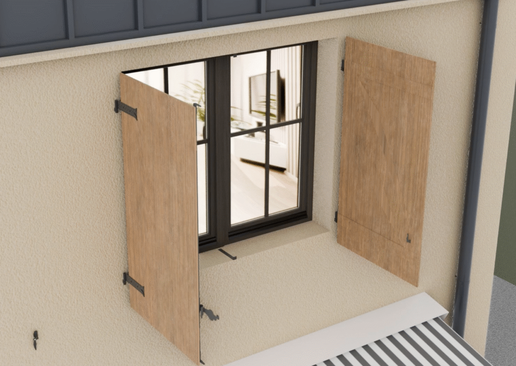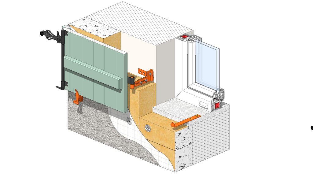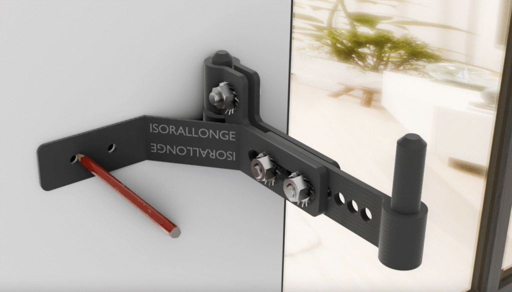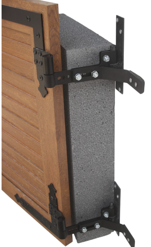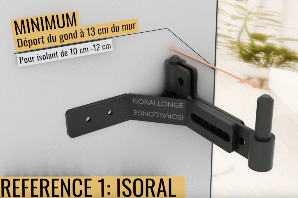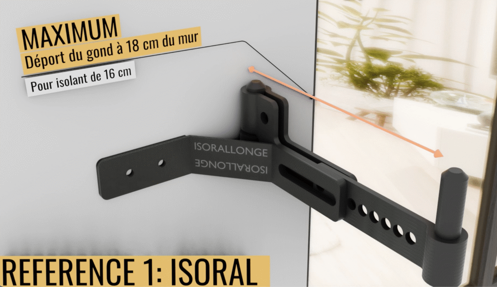 Déport de gond de volet réglable pour une remise du volet à l’identique suite à l’isolation thermique des murs par l’extérieur pour isolant de 10cm à 16cm