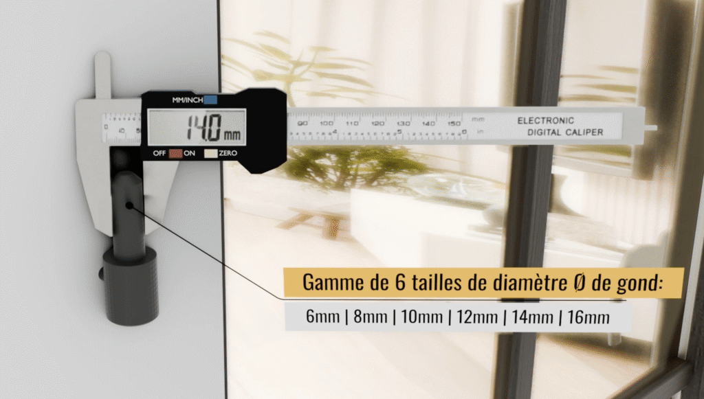 Disponible en 6 tailles de diamètre de gond : 6mm | 8mm | 10mm | 12mm | 14mm | 16mm